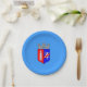 Placa de papel con diseño con bandera de Tirana, capital de Albania, bandera azul con escudo de armas