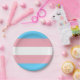 La Bandera del Orgullo Transgénero fue creada por la mujer trans estadounidense Monica Helms en 1999, y se mostró por primera vez en un desfile del orgullo en Phoenix, Arizona, Estados Unidos en 2000. La bandera representa la comunidad transgénero y consta de cinco franjas horizontales: dos azul claro, dos rosa y una blanca en el centro. Las rayas de arriba y abajo son azul claro, el color tradicional para los niños. Las rayas que las rodean son rosas, el color tradicional para las niñas. La franja en el medio es blanca, para aquellos que están transitando o consideran que tienen un género neutral o indefinido.