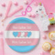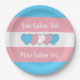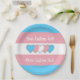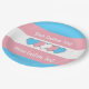 Placa de papel con la bandera del orgullo transgénero con pequeños corazones en el centro del diseño. Bandera rosa, blanca y azul del movimiento del orgullo trans; con un campo de texto modificable para su nombre o mensaje