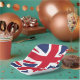 La bandera nacional del Reino Unido es la bandera de la Unión, también conocida como la bandera de la Unión. La bandera está formada por la cruz roja de San Jorge (santo patrón de Inglaterra), con un borde de blanco, superpuesta a la Cruz de San Patricio (santo patrono de Irlanda), que se superponen al Saltire de San Andrés (santo patrón de Escocia)