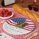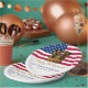 Añada el toque final a su fiesta militar de retiro con estas placas de papel militar de la bandera estadounidense y suministros de fiesta. Bandera estadounidense en blanco y azul rojo moderno, estrellas y rayas, con diseño de botas de combate doradas. Las placas de papel de este fiesta de la bandera estadounidense son perfectas para un fiesta militar de retiro, despliegues militares, celebración de la casa de bienvenida militar, graduación militar y soldados que se van fiesta. Perfecto para todo el ejército, ejército, protección de fronteras, patrulla fronteriza, oficial de conservación, guardabosques, guardián de juegos, aplicación federal de la ley. Personaliza este cartel patriótico de la bandera estadounidense con tu nombre de soldados y felicitaciones, bienvenido a casa, buena suerte o feliz retiro. Consulte nuestra colección para ver las invitaciones militares a la jubilación, regalos de graduación militar, favores partidarios y suministros. DERECHOS RESERVADOS © 2021 Judy Burrows, Black Dog Art - Todos los derechos reservados. Bandera estadounidense militar estadounidense bota placas de papel de Fiesta de retiro
