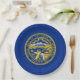 Este diseño presenta la bandera estatal de Nebraska, que es un estado que se encuentra tanto en las Grandes Llanuras como en el Medio Oeste de Estados Unidos. Nebraska está rodeada por Dakota del Sur al norte, Iowa al este y Missouri al sudeste (ambos a través del río Missouri), Kansas al sur, Colorado al suroeste y Wyoming al oeste. Es el único estado de EE.UU. triplicado sin litoral. A veces se le conoce como el "Estado Cornhusker". La bandera del estado de Nebraska contiene el sello del estado de Nebraska en un fondo azul nacional. El diseño actual fue encargado en 1925. La ciudad capital de Nebraska es Lincoln, mientras que la ciudad más grande del estado es Omaha. Otras ciudades importantes de Nebraska son Bellevue, Grand Island, Kearney, Fremont, Hastings, Norfolk, North Platte, Columbus, Papillion, La Vista, Scottsbluff, South Sioux City, Beatrice, Lexington, Gering, Alliance, Blair, York, McCook, Ralston, Nebraska City, Seward, Crete, Sidney Plattsmouth, Schuyler, Chadron, Wayne, Holdrege y Gretna.