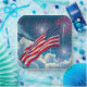 Plato De Papel Bandera Patriótica Americana con fuegos artificial