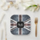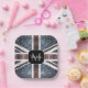 Personaliza con tu personalizado inicial y nombre. Diseño de estilo vintage Bandera británica del Reino Unido con chispas en rojo y azul purpurina. Usamos la foto de los purpurinas de chispas.