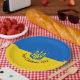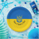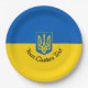 Plato De Papel Bandera ucraniana con escudo de armas y texto pers