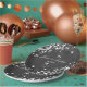 Este elegante remolino blanco sobre placas de papel de pizarra es perfecto para cualquier pareja que planee una boda romántica y de moda. Estas placas de papel pueden ser personalizadas para su ocasión especial y harían el accesorio perfecto para cualquier boda, ducha de novia, fiesta de compromiso, fiesta de cumpleaños y mucho, mucho más.
