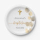 Plato De Papel Baptismo eucalipto blanco dorado elegante