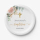 Plato De Papel Baptismo eucalipto chica floral rosa rosa oro