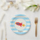 Plato De Papel Barco espacial con cohetes rojos; franjas azules c
