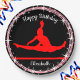 Crea una fiesta de cumpleaños de gimnasia inolvidable para tu gimnasta. El diseño tiene una silueta de gimnasta roja en las barras rodeadas por un adorno deslumbrante. Dice "Feliz Cumpleaños" en blanco y también está hecho personalizado con el nombre de tu gimnasta!