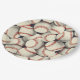Conjunto de ocho placas de papel de 9" con una imagen de pelotas de béisbol con costura roja. Vea el tarro de caramelo, taza de expreso, taza, tazón, matamoscas, jarra, tetera y tarta. Ver toda la colección de Placas del Día del Padre en los ALIMENTOS/BEV | Sección de platos.