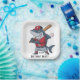 Un personalizado lúdico de un tiburón con uniforme de béisbol, listo para balancear su bate, perfecto para una fiesta de cumpleaños con temática deportiva. El tiburón lleva una gorra con la letra "S", una camiseta con el número "5" y pantalones blancos. Un diseño alegre y lleno de acción que aporta energía y diversión a cualquier celebración. El fondo es blanco y sobrio, por lo que es fácil de usar para invitaciones, decoraciones o fiestas.