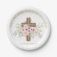 Plato De Papel Bautismo personalizado y cruz floral cristiana