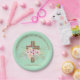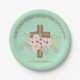 Plato De Papel Bautismo personalizado y cruz floral cristiana
