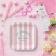 Plato De Papel Beach House Custom Name Pink Cabana Stripe