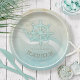 Este plato de papel en los suaves colores del mar y la arena le permite añadir fácilmente su propio nombre y texto usando la plantilla proporcionada. La simple imagen de casco de barco sobre un fondo acuático angustiado se ve resaltada por un estrecho marco blanco y un acento ondulado en agua y blanco. Busque ID623 para ver la coordinación de elementos costeros y productos adicionales con este diseño.