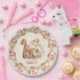 Caer antes del 1° cumpleaños Papel para bebé Plates con un adorable oso de peluche en un gorra rosa rubor, calabazas, globos y gran número uno de madera. Personaliza fácilmente el nombre. Visita la tienda para ver la línea completa de productos disponibles - Kate Eden Art