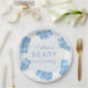 Este lindo plato de papel para el cumpleaños de un niño "beary dulce" presenta un fondo azul claro de bebé con osos, nubes y estrellas de goma azul. Personalízalo para tus necesidades. Puedes encontrar productos coincidentes en mi tienda.