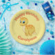 Un adorable brontosauro bebé "Cutisaurus", amarillo con manchas naranjas y grandes ojos azules. Personalice con el nombre de su hijo.