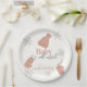 Este lindo y moderno plato de papel de chica para bebé "baby it's fría afuera" tiene una abanie y un par de guantes en rosa polvoriento sobre un fondo blanco con copos de nieve. Personalízalo para tus necesidades. Puedes encontrar productos coincidentes en mi tienda.