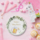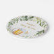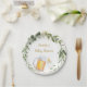 Estas placas de papel presentan una vegetación acuática con una cerveza y una botella de bebé y acentos de Relieve metalizado dorado.