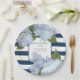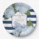 Plato De Papel Bebé floral de hidrangea blanca con rayas azules d