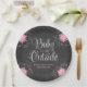 placas de papel para la ducha con motivos de moda de invierno. Presentando un guión con la frase "Baby It's Cold Outside", con copos de nieve en rosa y blanco en un diseño de fondo de pizarra. Moderno y bonito para una ducha de chica.