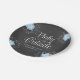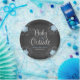placas de papel para la ducha con motivos de moda de invierno. Presentando un guión con la frase "Baby It's Cold Outside", con copos de nieve azules y blancos en un diseño de fondo de pizarra. Moderno y bonito para una ducha de bebé.