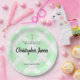 Al igual que la colección de invitaciones al bautismo de mi tienda, este plato de papel es otro toque personal para el día especial de su bebé. El verde puede cambiarse fácilmente a cualquier color que quieras, avísenme si necesitas mi ayuda. ¡Felicitaciones por este día bendito!