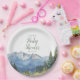 Plato De Papel Bebé Shower Acuarela Moderna de Montaña Flor Silve