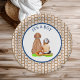 Platos de papel de bebé de niños de color marrón y azul personalizados con un niño sentado al lado de un perro con un tema de béisbol.
