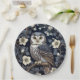Adorables lechuzas nórdicas de guijarros perfiladas entre delicadas flores de luna sobre un fondo marino profundo. ¡Estos encantadores platos de papel le dan un toque nocturno a cualquier reunión o celebración!