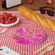 Plato De Papel Bello tono de joya rojo y rosa fucsia abstracto
