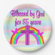 Esta joya de 85 años ama a Jesús todos los días de su hermosa y bendecida vida. Muestra tu adoración de ella con estos platos de papel de celebración de cumpleaños 85 de la cruz rosa bonito y el arcoiris. Tu asombrosa chica de 85 años atesorará nuestros regalos únicos y de una clase de 85 cumpleaños personalizados que ella apreciará cada año. Celebra cumplir 85 años con nuestra invitación de 85 años, artículos para fiestas y regalos de www.zazzle.com/JLPBirthday.