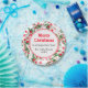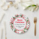 Hermoso patrón de delicados botánicos acuarelas que representan bayas rojas lindas y grandes. Personalizable Feliz Navidad, sincero deseo por Año Nuevo y apellido. Platos de papel decorativos que realzan la decoración festiva de las mesas.