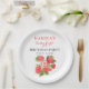 Berry primera fiesta de cumpleaños, fruta de fresa de la placa de papel color agua. Elegante, simple caligrafía, fresa 1er cumpleaños Fiesta plato de papel. Personalízalo con tus detalles.