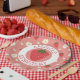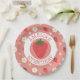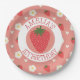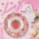 Placas de papel para el primer cumpleaños de Berry. Con fresas rojas de fondo rosado. ¡Perfecto para la celebración del primer cumpleaños de tus niñas! También hay invitaciones, carteles y decoración de coordinación.