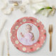 Placas de papel fotográfico de Berry First Birthday. Con fresas rojas de fondo rosado. ¡Perfecto para la celebración del primer cumpleaños de tus niñas! ¡Presenta fácilmente la foto de tu chica de cumpleaños en el marco editable! También hay invitaciones, carteles y decoración de coordinación.