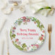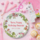 Hermosa tipografía acuática rodeada de fresas acuáticas y follaje - personalizar con su nombre y fecha de cumpleaños.