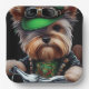 Un amigo peludo detrás de las manillares de una brillante bicicleta verde, usando un traje verde del Día del San Patricio que hace que las cabezas se vuelvan. El perro está vestido con un conjunto festivo, con una corbata verde de arco y un sombrero superior a juego que se sienta cómodos sobre su cabeza. El conjunto presenta un diseño intrincado de rocas de champú y leprechauns, lo que deja claro que este perro está listo para celebrar el Día de San Patricio con estilo.