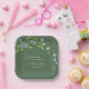 Papel de bienvenida boda Plates con un elegante ramo de flores suaves y azules olvidadas, no con hojas de color verde claro y tallos curvos, colores pastel naturales primaverales o veraniegos, un romántico ramo de flores silvestres. acuarela digital botánica. Placas de papel de bienvenida Boda de la flor de la flor. Colección Olvidar No.
