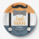 Coincide con la invitación y decoración de tu pequeño hombre a la ducha de bebé con estos adorables platos de papel en azul marino y naranja con bigote, corbata de arco y tirantes. ¡Invitación coincidente y otra decoración fiesta en la tienda!