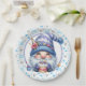 Una Cuidada Placa De Papel De Cumpleaños De Un Gnome Azul Con Pastel