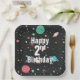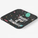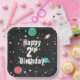 Rocket ships, comets and planets in black outer space for child's 2nd birthday.