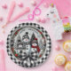 A Merry Christmas Black And White Buffalo Plaid Snowmen With Bow Paper Plate