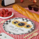 Platos de papel boda florido de búfalo blanco y negro rústico con flores de girasol y luces de cuerda sobre un fondo de cuadros negros y blancos. Artículos coincidentes disponibles para complementar estas placas de papel boda. Personalice fácilmente estas placas en cualquier ocasión.
