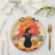 A paper plate with autumn colors, a black cat , haunted house and barn. Matching products available.