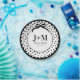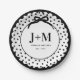 this design features a black and white polka dot pattern surrounded by a black ribbon frame. You can personalize with initials, names and a year.