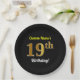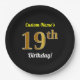 Plato De Papel Black, Faux Gold 19th Birthday + Custom Name