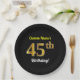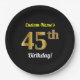 Plato De Papel Black, Faux Gold 45th Birthday + Custom Name